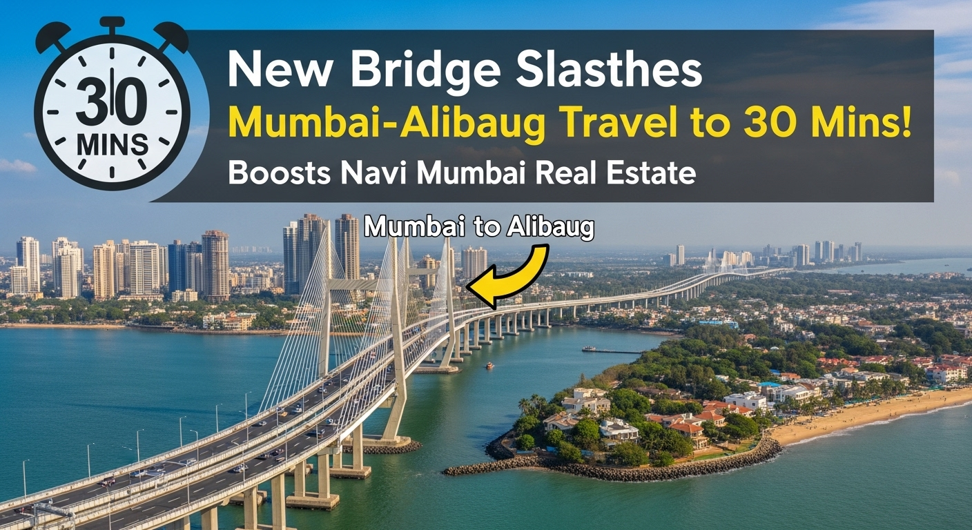 Mumbai, Maharashtra – For decades, traveling from Mumbai – Alibaug has meant either a long two-hour drive or a ferry ride across the Arabian Sea. That is about to change dramatically. Soon, residents and tourists will be able to travel from Mumbai to Alibaug in just 30 minutes, thanks to a new bridge project that promises to transform regional connectivity and fuel a real estate boom across Navi Mumbai and Raigad district.